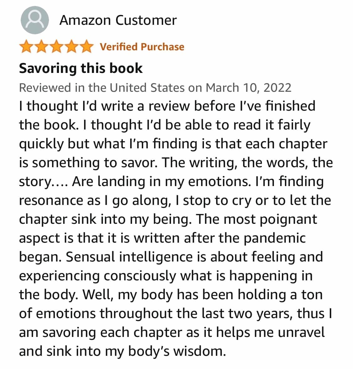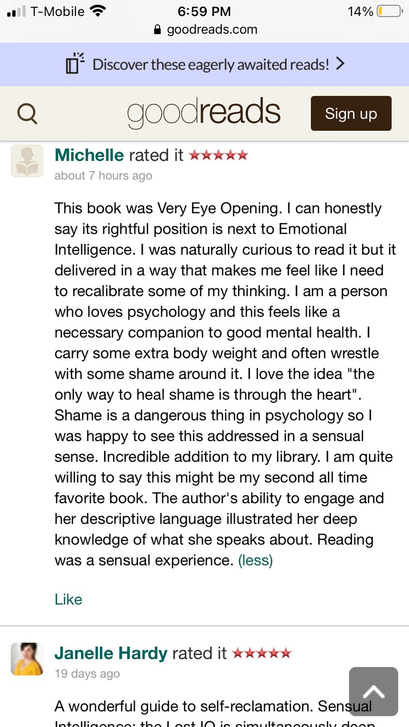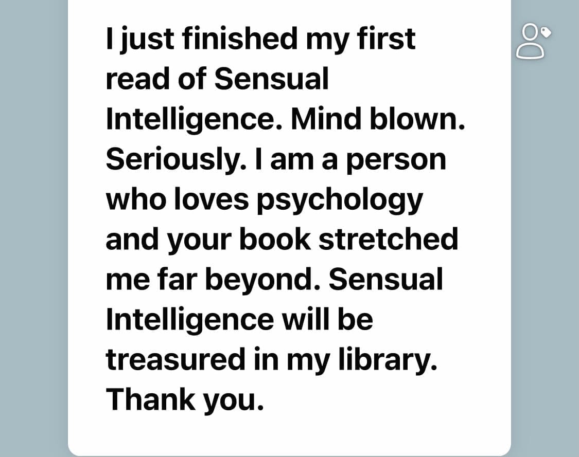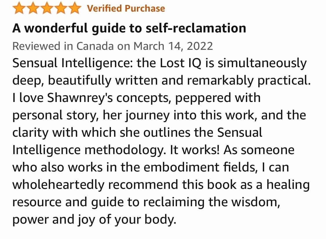 “BEAUTIFUL! Sensual Intelligence: The Lost IQ took me on an exquisite journey to embody my joy, pleasure and grace. Read this book — it will shift your life experience in profound ways.”